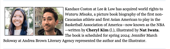 K-Gr 4–In a multilayered picture book that, like the hero at its center, offers so much strength, personality, and invaluable life lessons in a very dense package, Kim brings young readers biography, sports story, intergenerational conflict, U.S. and world history, and racism battled on a basketball court. Click here to read the full review.